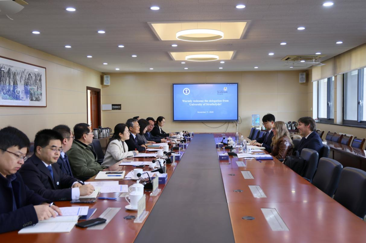 卞正富首先对希普顿一行来访表示欢迎。他回顾了两校在深地科学领域的合作历程,并指出思克莱德大学与中国矿业大学都有“学以致用”的办学理念,学科优势特色高度契合,两校在诸多学科领域存在广阔的合作空间,期待在希普顿院士的推动下进一步拓展两校在学生联合培养、科学研究等方向的合作。