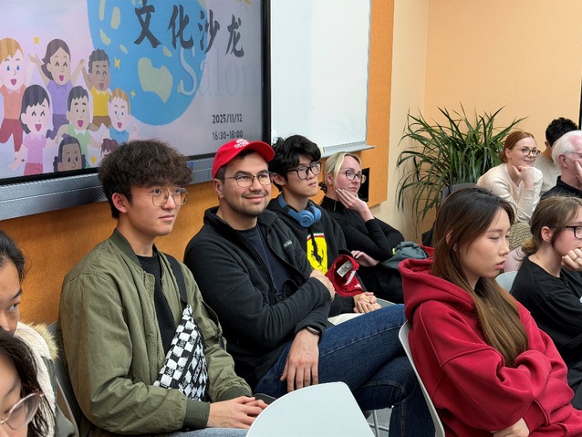 活动最后,在自由交流环节中,两国青年学子畅所欲言,互换联系方式,合影留念,现场气氛温馨而热烈。沙龙还设置了茶歇与抽奖环节,为参与者提供了更多互动机会。