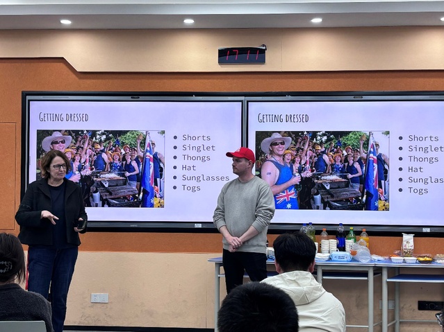 活动伊始,中国矿业大学外国语言文化学院副院长、澳研中心主任翟石磊为沙龙致开幕辞。他对远道而来的澳洲师生表示热烈欢迎,并强调了语言与文化在连接世界、促进民心相通中的重要意义。格里菲斯大学人文学院的胡明雁老师在随后的致辞中,以幽默风趣的语言分享了自己的跨文化经历,鼓励两国青年积极学习彼此语言,深入了解多元文化,在交流中拓展视野、增进理解。